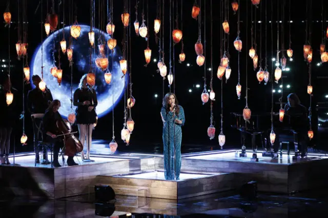Next, Alicia Keys takes the stage with her team, Stephanie Rice, Vanessa Ferguson and Chris Blue plus 3 pianos to sing “Natural Woman.” Chris solo. It’s not often a dude sings this song. Like ever. Hands down, Alicia has the best singers on her team. She won’t win though.
