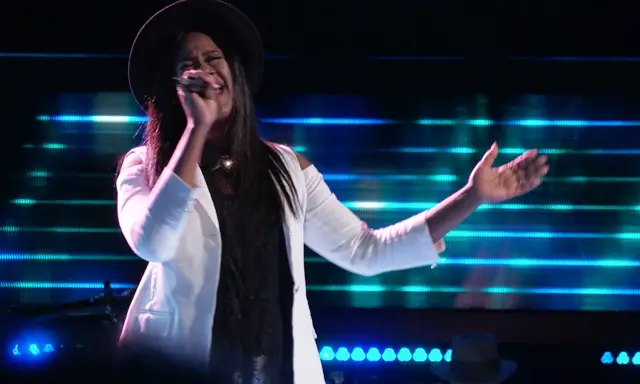 Next, is Brooke Simpson performing Demi Lovato’s hit “Stone Cold.” By the end of the soulful belter’s performance, coach Jennifer Hudson is literally grabbing stuff to throw at her. “I thought I knew singing,” Jhud said, “Until you came out here and did that.” And coach Miley Cyrus runs up on stage to show the singer how fast her heart was beating. Fun Fact: Brooke is from a small Native American community in North Carolina.