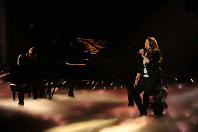 Josh Krajcik – Nicole Scherzinger – Over 30s – “The Pretender” by Foo Fighters – Oh. He looked so much cuter slimmed down with short hair. Nicole is so rock n roll she wants to run naked. Mkay. This is literally the first performance of the night that I would call legitimate rock. I was a little taken aback by Josh’s low growl, and could have used a little more dynamics in his performance–certain stretches of the song sounded like one long mumble–but he held the audiences’ attention amidst the light show and the loud band. He picked his own song– it’s no wonder he seems so comfortable this week. OMG Nicole. Calm down skippy. She’s having what looks like a seizure “rawking out” to Josh. LA: You have the authenticity, stage presence, you picked the right song. Paula: Everything about tonight worked unbelievably for you. Best of the evening. Simon: Never ever listen to a single person again. That was bloody fantastic. Nicole: You took me back. I was in a rock band way back. She thanks Dave Grohl for clearing it. Oh yeah. Doesn’t Dave hate clearing songs for TV shows? Suck it, Glee. – 1-855-843-9306 Text vote to 9306
