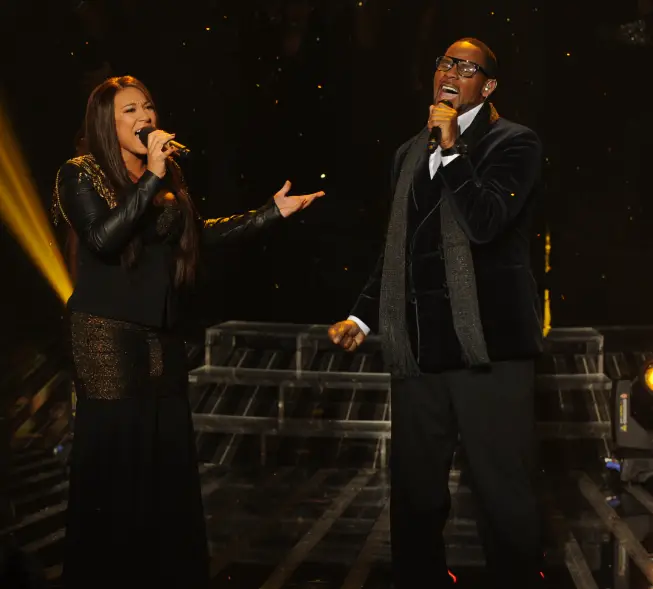 Melanie Amaro & R. Kelly – “I Believe I Can Fly” – Simon’s Girls – Melanie is definitely winning this round, and unlike her fellow competitors, I’ll bet any money this song is in her repertoire. She’s VERY comfortable singing this tune. Confident, ON KEY. And she’s got SOME chemistry with R. Kelly, who also sounds really good. R. Kelly says it’s the first time he’s ever performed the song in a duet. So? LA: That is one of the most important songs ever written. I feel like you got a little bit overshadowed by R Kelly (Wait..you blow smoke up the boys asses, but criticize Melanie, who was clearly better? I know your game LA, but you sound like an idiot.) Nicole: She did the best that she could in that key. She put a 1000 percent into that performance. She soared on it. Paula: It’s fitting that you are singing with R. Kelly. I wanted more emotion. (Everyone but Simon throwing shade on Melanie, who was clearly the best) Simon: That is what’s called showing respect with the person you are singing with. You looked like someone who could be a really important established artist. – 1-855-843-9303 Text vote to 9303