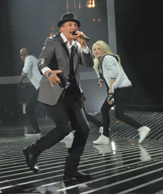 Host, Steve Jones tells us that the contestants will sing when we return from break. Michael Jackson Immortal World Tour takes the stage. Wait…what? The three contestants join them for a totally AWKWARD CAKES performance. Josh, in particular, forced to do “dance moves” looks like he’d rather be anywhere else. What the hell was the point of that? Are we supposed to judge the trio on a bizarre group number? Again. Group numbers? Finale material.