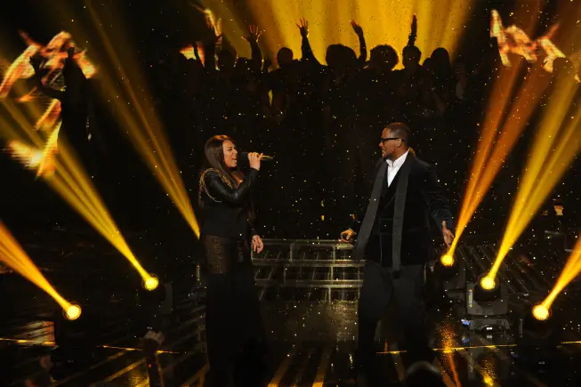 Melanie Amaro & R. Kelly – “I Believe I Can Fly” – Simon’s Girls – Melanie is definitely winning this round, and unlike her fellow competitors, I’ll bet any money this song is in her repertoire. She’s VERY comfortable singing this tune. Confident, ON KEY. And she’s got SOME chemistry with R. Kelly, who also sounds really good. R. Kelly says it’s the first time he’s ever performed the song in a duet. So? LA: That is one of the most important songs ever written. I feel like you got a little bit overshadowed by R Kelly (Wait..you blow smoke up the boys asses, but criticize Melanie, who was clearly better? I know your game LA, but you sound like an idiot.) Nicole: She did the best that she could in that key. She put a 1000 percent into that performance. She soared on it. Paula: It’s fitting that you are singing with R. Kelly. I wanted more emotion. (Everyone but Simon throwing shade on Melanie, who was clearly the best) Simon: That is what’s called showing respect with the person you are singing with. You looked like someone who could be a really important established artist. – 1-855-843-9303 Text vote to 9303