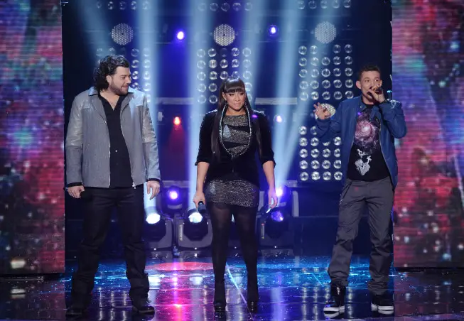 Josh Krajcik and Melanie Amaro duet on David Bowie’s “Heroes” Wait. Would they have sung this if one of them had gone out 3rd? Or did the Final 3 practice this together? Melanie and Josh sound good as a duo. They tell each other “I love you”. Hey wait. X Factor culture proscribes that you feel hatred for each other. YOU AREN’T SUPPOSED TO DO THAT!