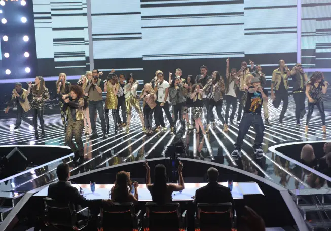 Group performance! The X Factor Top 12 take the stage to sing…”Without You” by David Guetta. The vocals on this are really good, which means, of course, they are lip syncing. Except for Astro, who raps the mid-section and totally futzes up the words.